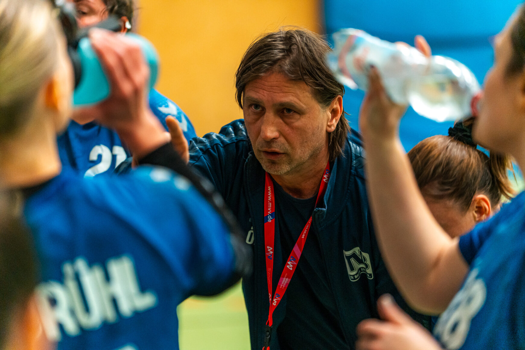 Trainer Örs Konrad sah schon vor Beginn der Partie einen Silberstreif am Horizont, er sah seine Mädels voller Tatendrang und Motivation. Weiter ohne die gesperrte Joceline Tomann und Marie Joerg noch in Babypause, zeigten die Gastgeberinnen von Beginn an, was heute von ihnen zu erwarten war. Hinten kompakt stehen, dazu schnell und variabel nach vorne, hieß die Devise. Natürlich begann auch Edingen so, wie vermutet. Mit viel Druck und Tempo in gewohnter Manier hielten sie die Partie zunächst offen (5:5), bevor die Brühlerinnen zu wahren Glanzleistungen aufliefen. Sechs Tore in Folge trafen die Gäste ins Mark, eine Auszeit brachte außer 60 Sekunden Atempause keinen Erfolg. Das hing natürlich auch an der hingebungsvollen Abwehrarbeit der Gastgeberinnen zusammen. Sie waren immer in Bewegung, ließen den Gegenspielerinnen keinen Raum und Ann-Kathrin Göbel im Brühler Kasten hielt hervorragend. So blieb es bei lediglich elf Edinger Treffern in der ersten Halbzeit, Stand 16.11.